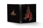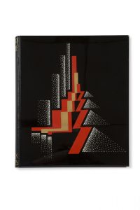 or et coquille d'oeuf, rappel sur le second, doublure de maroquin noir portant, encastrée dans chaque contreplat, une plaque à l'or mat à décor géométrique rouge et noir laqué, gardes de moire noire, non rogné, couverture et dos, chemise demi-maroquin, étui (Paul Bonet, 1926).