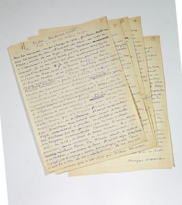 SOUPAULT PHILIPPE (1897-1990) — Enfin Cendrars vient... ou Tel qu'en lui-même, enfin, manuscrit autographe signé. — S.d., 5 pages in-4 à l'encre bleue.
