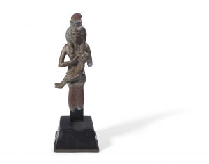 ÉGYPTE. — Statuette ex-voto représentant la déesse Isis — Isis est assise, allaitant l’enfant Horus nu, assis sur ses genoux.