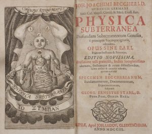 BECHER Johann Joachim (1635-1682). — Physica subterranea (Leipzig, J.L. Gleditsch, 1703). — Fort in-8 (17,6 x 9,8 cm), veau lavallière, dos orné, pièce rouge, tranches rouges (reliure fin XVIIIe siècle).