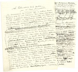 BECQUEREL Henri (1852-1908) physicien, il découvrit la radioactivité. — manuscrit autographe signé en tête « Henri Becquerel », La Radio-activité de la matière, [vers 1905] ; 5 pages in-4 avec d’importantes ratures et corrections. —...