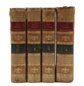 BIOT Jean-Baptiste (1774-1862). — Traité de physique expérimentale et mathématique (Paris, Deterville, 1816). — 4 vol. in-8 (20,2 x 11,8 cm), basane racinée, dos lisse, pièces rouges et vertes, tranches marbrées (reliure de l’époque).