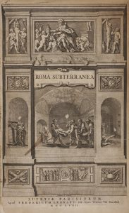 Première édition parisienne, plus rare et recherchée que l’originale romaine de 1651, de l’ouvrage de Bosio, traduit en latin et illustré par Paul ARINGHI de bois dans le texte et d’eaux-fortes hors-texte dont le frontispice, et d’une carte repliée représentant le plan, les sarcophages et les décors des catacombes chrétiennes de Rome.