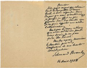 « Votre projet ne peut que réunir toutes les sympathies. J’avais tardé à vous répondre dans l’espoir que vous m’oublieriez ; je préfère en effet ne pas figurer dans des comités où je ne puis apporter une utile collaboration. Toutefois si vous estimez que mon adhésion peut vous servir, je ne puis qu’en être honoré »…