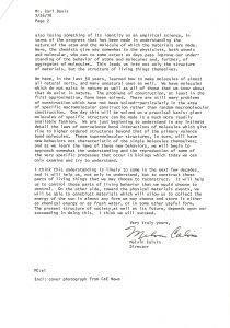 Il imagine que Davis a quelque chose en commun avec le professeur de physique que lui-même eut jadis au lycée central de Detroit, et il espère qu’il s’intéresse à l’avenir de la Science. La chimie semble être à une phase critique de son histoire, créant des risques et désavantages inconnus autrefois, alors même qu’elle crée de nouveaux matériaux et contribue à l’alimentation et à la santé de l’humanité… Mais elle est aussi en crise, ayant perdu un peu de son identité scientifique face à la physique et à la biologie, et ayant perdu aussi de son caractère de science empirique… Après un demi-siècle de création de molécules, on commence à peine à comprendre les lois de la valence et de la non-valence : ce sera l’œuvre des prochaines décennies…
