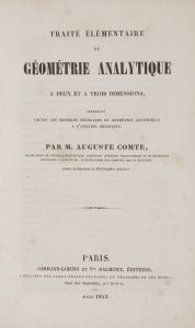 Édition originale, complète des trois planches, du seul traité de mathématiques composé par Auguste Comte quelque temps à peine après l’édition du Cours de philosophie positive.