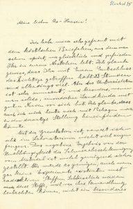 Ich freue mich sehr auf Ihre Arbeit über den Effekt. Ich habe auch Versuche gemacht, in welchen ich den remanenten Magnetismus durch Entladestrom eines Kondensators umkehrte. Die Sache gelang aber bis jetzt nicht, weil sich trotz der kurzen Dauer des Feldes (10-3’’) ein starkes Wackeln des Stäubchens einstellte, welches den Effekt zudeckte. Dies wird natürlich bei Ihrer Methode vermieden. Ich glaube kaum, dass Ihre 10% Unterschied gegen die Theorie reell sind. Wenn es aber doch so wäre, dann wäre es sehr wichtig. Ich weiss eigentlich immer noch nicht, was Maxwell in der Sache gemacht hat. Jedenfalls zeigt sich auch hier, was dieser Mann für eine Nase gehabt hat! Die Bemerkung Barnetts hat mir eigentlich auch wenig Zutrauen eingeflisst.