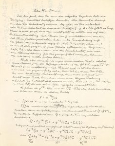 Au verso, calculs autographes (une douzaine de lignes d’équations) de « Geodätische Linie » (lignes géodésiques).