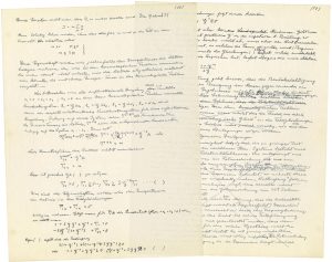 EINSTEIN Albert (1879-1955). — MANUSCRIT autographe, [1945] ; 2 pages in-4 ; en allemand. — Sur le problème cosmique. — Pages 13 et 14 du manuscrit de l’appendice intitulé « On the Cosmological Problem » dans la seconde édition de...