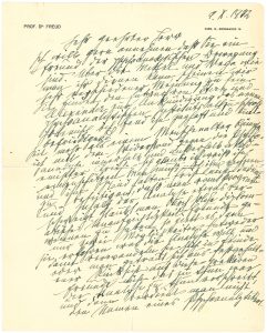 FREUD Sigmund (1856-1939). — L.A.S. « Freud », Wien 9 octobre 1932 ; 1 page ¾ in-4 à son en-tête et adresse Wien IX, Berggasse 19 ; en allemand (petites fentes aux plis réparées).