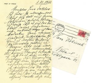 FREUD Sigmund (1856-1939). — L.A.S. « Freud », Wien 3 novembre 1932, au Dr Hans ROBICSEK à Vienne ; 1 page et demie in-8 à son en-tête et adresse Wien IX, Berggasse 19, enveloppe ; en allemand.