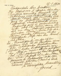 FREUD Sigmund (1856-1939). — L.A.S. « Freud », Wien 16 mars 1934, à un Directeur (« Herr Direktor ») ; 1 page in-4 à son en-tête et adresse Wien IX, Berggasse 19 ; en allemand (marques de plis, petite fente au pli réparée, quelques...