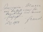 Ex-dono autographe signé de Sigmund Freud sur le feuillet de garde, en décembre 1928 : « Prinzessin Marie aus Anlaß einer Erkrankung und einer Einsicht  /