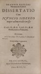 On trouve à la suite, la troisième édition de la Dissertatio de KEPLER, après celles de Prague et Florence l’année précédente, qui est une réaction enthousiaste au travail de Galilée. Pourtant Kepler ne possède pas le fameux instrument qui lui aurait permis de corroborer les observations de Galilée, il se contente d’analyser la méthode employée et la plausibilité des affirmations avancées.