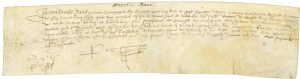 « Je Ambroise Pare premier Chirurgien du Roy » confesse avoir reçu François de VIGNY, « receveur de la ville de Paris » (cinquième aïeul d’Alfred de Vigny), la somme de six livres cinq sols pour un quartier d’une rente de 25 livres tournois « venduz et constituez par messieurs les prevost des marchans et eschevins » de Paris…