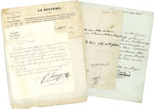 François Arago (3), Henri Baillon, Jean-Baptiste Baudry, Graham Bell, Jacques Bertillon, Joseph Bertrand, Gaston Bonnier, Jean-Baptiste Bouillaud, Jean-Baptiste Boussingault, Philippe Boyer, Auguste Bravais, Georges Brouardel, Augustin Cabanès, Jean-Antoine Chaptal (2), L.M. Delaray, Joseph-Nicolas Delisle, Henry Denny, Jules Desnoyers, Alphonse Devergie, Napoléon Didron, Thomas Edison, Léonce Élie de Beaumont, Charles Fauvel, Édouard Féraud, Pierre Flourens, Pierre Fouquier, Antoine Fourcroy (2), Dr Foveau de Courmelle (3), Jules Gavarret (6), Jacques Gay, Paul Gervais, Élie Gintrac, Jean Girardin, Pierre-Clément Grignon (et rapport sur les mines de charbon de Champagney), Charles Haldat du Lys, Jacques Hardy, François Houstet, Henri Huchard (3), Jules Janssen, Émile Jung, Carl Kunth, B.G.E. de Lacépède, Pierre-Simon de Laplace (2), Dominique-Jean et Hippolyte Larrey, W.A. Leighton, Eugène Lenfant, Urbain Le Verrier (2), Jules Lissajous, Édouard Malapert (3), Jean-Nicolas Marjolin, Louis Mathieu (sur les chronomètres), Charles-François Brisseau de Mirbel, Victor Morel-Lavallée, Henri Navier, Mathieu Orfila (3), Ambroise Palisot de Beauvois, Étienne Pariset, Jules Péan, Johann Christian Poggendorff, Émile Polonceau, Benjamin Raspail, Joseph Redtenbacher, Henri Rémaury, Auguste Reverdin, Charles Richet, Charles Robin, Ulysse Trélat, Henri Tresca, John Tyndall, Alfred Velpeau, etc. On joint un carnet manuscrit d’exercices et théorèmes mathématiques (fin XIXe s.).