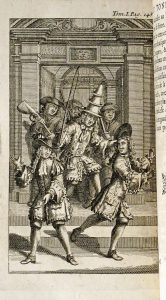 [4]-xvi-280 pp.; 7 h.-t. (qqs ff. brunis au t. I). Rel. de l'époque : plein veau marbré, dos fleuronnés dorés à nerfs et étiq. de cuirs vert et rouge, tr. rouges. Illustré de 8 eaux-fortes par Andreas Reinhardt jr (Copenhague 1715-1752 Frankfurt-am- Mein) : frontispice, 6 eaux-fortes (t. I) et 1 jolie gravure illustrant la "Bataille entre les livres anciens et modernes dans la bibliothèque de St-James" (t. II). Satire politique et littéraire de la Querelle des Anciens et des Modernes développée à l'avantage des Anciens dans le Conte du Tonneau (t. I) et "La bataille des livres" (t. II), le t. III contenant le "Traité des dissensions entre les nobles et le peuple dans les républiques d'Athènes & de Rome", "L'art de ramper en poésie" attribué à Pope et "L'art du mensonge politique" attribué à John Arbuthnot. Quant au titre du recueil, Swift fait allusion à un usage chez les marins : jeter un tonneau vide à une baleine (i.e. les "beaux esprits") afin de la détourner du bateau (i.e. la société civile, la politique et la religion). L'originale parut en 1704 et la traduction frangaise en 1721. # Teerink, pp. 185-186 n° 281 et p. 179 n° 173 (8 h.-t. pour les éd. de 1732, 1742 et 1757); # Cohen 964 (7 h.-t. pour les éd. de 1721, 1732 et 1756); # Graesse VI-535; # www.lettres.univ-metz.fr. Provenance : Villeneuve l'aïné, fabriquant de Draps à Mirepoix (étiq. du XIX s.).