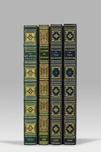 2 volumes in-8, demi-maroquin bleu nuit à long grain avec coins, dos lisse orné de filets et fleurons dorés, non rogné, couverture et dos (Mercier sr de Cuzin).