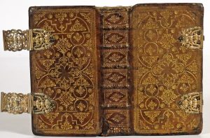psaumes-, très pet. perforations marg., pet. taches marg., qqs pp. lég. jaunies, cahier Ades psaumes part. dérelié, pet. traces de moisissures). Rel. de l'époque : plein maroquin brun à fermoirs vermeils, plats décorés "à la fanfare", dos fleuronné doré à nerfs, tr. dorées (fermoirs modernes, coiffe sup. manquante, trou de ver au dos, lég. passée, pet. restauration au caisson inf., coins +/- émoussés). Version de Genève du Nouveau Testament avec titre gravé à l'adresse d'Antoine Cellier, beau-fils du librairie-imprimeur calviniste Pierre Des Hayes (+ 1659) et qui fut son apprenti à partir de 1624. Vignette sur le titre figurant un ange tenant un livre dans sa main gauche, s'appuyant sur une croix et piétinant un squelette, utilisée par les Huguenots de La Rochelle dans leur lutte contre Richelieu et les catholiques. # Darlow & Moule 3753. Relié avec : Les pseaumes de David, mis en rime frangoise, par Clément Marot, et Théodore de Bèze [...]. Se vend à Charenton, Paris, A. Cellier, 1659. Texte entièrement accompagné des partitions musicales d'Antoine Lardenois qui voulut rénover la musique des psaumes. Suivi par des petits traités ou documents dont : "La forme des prières ecclésiastiques", "La manière de célébrer le mariage" et "Les Dix Commandemens de la loi de Dieu". Jolie reliure.