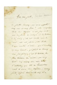 Très belle lettre écrite à “son ami et son frère”, au lendemain de la parution de son poème en provençal: Mirèio. Louis Ratisbonne fit paraître alors deux articles dans le Journal des Débats.