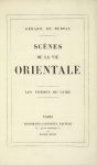 — SCÈNES DE LA VIE ORIENTALE. I. LES FEMMES DU CAIRE. - II. LES FEMMES DU LIBAN. Paris, Hippolyte Souverain, 1850. 2 volumes in-8, maroquin vert à long grain, décor de filets dorés droits et courbes, gros fers rocaille, dos orné, bordure intérieure, doublure et gardes de soie moirée saumon, tranches dorées, non rogné, couverture, étui (G. Mercier rel. 1939 / E. & A. Maylander dor. 1943). Ensemble 3 volumes.