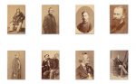 PHOTOGRAPHIES. COURBET (Gustave) - DELACROIX (Eugène) - RENOIR (Pierre-Auguste) - MANET (Édouard) - BERLIOZ (Hector) - VERDI (Giuseppe) - WAGNER (Richard) - LISZT (Franz). 8 PHOTOGRAPHIES ORIGINALES format carte de visite, sans date. Épreuves sur papier albuminé, montées sur carton, au verso crédits des ateliers imprimés, chacune environ 103 x 63 mm, réunies dans un seul cadre.