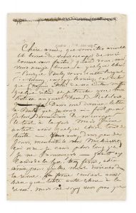 LETTRE AUTOGRAPHE A CHARLOTTE MARLIANI, [Marseille, fin février 1839]. 4 pages in-8 (205 x 132 mm), timbre sec GS, sous chemise demi-maroquin noir moderne.