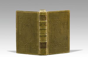 Paris, Mongié, 1822. 2 tomes en un volume in-12, veau olive, filet doré, roulette palmée à froid entourant une grande plaque à motifs de rinceaux, dos orné de filets et roulettes dorés et de fers à froid, filet doré sur les coupes, tranches marbrées, étui moderne (Reliure de l'époque).