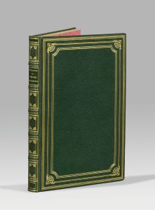 VOYAGE SENTIMENTAL. Traduction nouvelle. Précédée d'un Essai sur la vie et les ouvrages de Sterne par M. Jules Janin. Paris, Bourdin, [1841]. Grand in-8, maroquin vert à long grain, triple encadrement de filets dorés avec fleuron aux angles, dos orné, bordure intérieure, doublure et gardes de soie moirée corail, tranches dorées sur témoins, étui (Mercier sr de Cuzin).