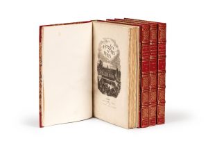 LES MYSTERES DE PARIS. Nouvelle édition, revue par l'auteur. Paris, Ch. Gosselin et Librairie Garnier frères, 1843-1844. 4 volumes grand in-8, demi-maroquin rouge avec coins, dos orné, non rogné, couvertures et dos (Mercier, success. de son père)