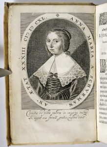 Van Schurman, Anna Maria.- Opuscula hebraea, graeca, latina, gallica. Prosaica & metrica. Lugd. Batavor. [Leiden], ex officinâ Elseviriorum, 1648. In-8° : [6]-374 pp.; 1 h.-t. (pet. déch. restaurées sur le titre, rares pet. rouss., pet. mouill....