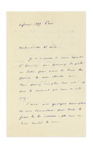 LETTRE AUTOGRAPHE SIGNÉE A GENEVIÈVE MALLARME, datée 4 février 1899, Paris, 1 page et demie in-12 (177 x 113 mm), sous chemise demi-maroquin bleu moderne.