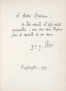 Exemplaire enrichi de cet ENVOI AUTOGRAPHE SIGNE A ANDRÉ MALRAUX, daté de Washington, 1949:
