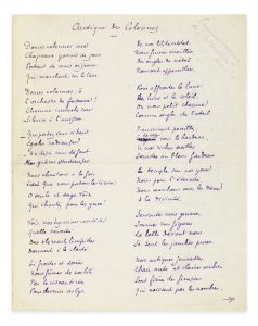 Écrit à l'encre violette, le texte est réparti en deux colonnes sur la première page comme une évocation du titre. Le manuscrit donne le texte de cette première version, qui comporte diverses variantes de ponctuation, et deux variantes de mots (voir Œuvres, Pléiade, t. I, p. 116-118, et p. 1650-51). Après sa parution dans Littérature, le poème sera repris, avec quelques corrections, dans le recueil Charmes (1922).