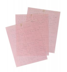 BELLMER HANS (1902-1975) — Lettre autographe signée adressée à Joë BOUSQUET [S.l.], 17 juillet 1945, 3 pages in-4 à l'encre sur papier rose.