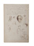 Au recto, dix têtes et bustes d'homme et de femme à l'encre.