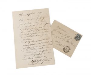 CÉZANNE PAUL (1839-1906) — Lettre autographe signée adressée à Gustave GEFFROY — Paris, 17 mai 1898, 1 page in-8 à l'encre, enveloppe conservée. — (Traces de pliures inévitables).