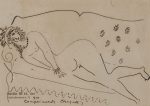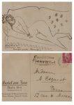 CHAGALL MARC (1887-1985) — «Nu couché», dessin original adressé à Madame M. COQUIOT (à Paris) — Berlin, 1930, stylo et plume sur carte postale de l'Hotel Eden am Zoo, sous encadrement.