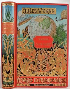 Verne, Jules.- Mathias Sandorf. 111 dessins par Benett, et une carte. Paris, Hetzel, [c. 1905]. Gr. in-8°; frontispice protégé par une serpente et illustrations (qqs déch marg., der. p. lég. brunie au sinon très frais). Cartonnage polychrome...