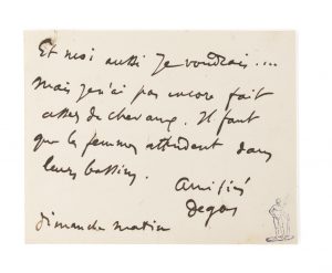 Degas envie l'avancée des travaux de son ami sculpteur Albert Bartholomé (1848-1928).