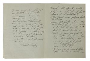 Lettre autographe signée, probablement adressée à l'un des fondateurs des Éditions de La Sirène, Richard Cantinelli, à propos de deux ouvrages de Dufy.