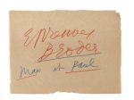 Dessin daté de « Cannes, le 14.1.57 » et dédicacé « pour Louis Broder », exécuté aux crayons rouge et bleu. Cramer, 78 (n'indique pas cette suite numérotée sur 2 de la lithographie et des pointes sèches, sans aucun doute réservées à l'artiste et à l'éditeur). La rencontre de Max Jacob, alors qu'il n'avait que vingt ans, fut déterminante dans la vie de Picasso. Il partagea sa chambre boulevard Voltaire avant de s'établir au Bateau lavoir, à Montmartre, où le suit Max Jacob. Max Jacob initiera le jeune peintre espagnol à la culture et sera son ardent défenseur.