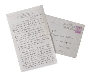 Enveloppe autographe conservée à l'adresse de Michaux, rue Séguier à Paris. (La lettre est un peu froissée).
