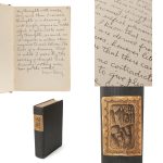 Un dessin original de Man Ray au crayon figure sur le dernier feuillet et représente une automobile portant un canon. Au verso du feuillet, quelques notes autographes au crayon de Man Ray relatives à Huxley et au Marquis de Sade. L'étiquette au dos de la reliure est un dessin original à l'encre de chine de Man Ray, titré 1944, portant son nom calligraphié de sa main.