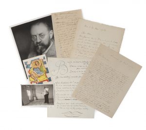 MATISSE HENRI (1869-1954) — Trois lettres autographes signées et une transcription autographe du dix-huitième sonnet de Louise Labé, comportant un B majuscule grossoyé élaboré, et le dessin d'une bouche. — Nice, Issy, 1926-1929, 5 pages de...