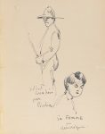 - 1 important dessin à l'encre signé et légendé par Picabia « Soldat canadien. Sa femme en Amérique »,