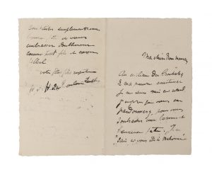 « Ma chère bonne maman. Au milieu du brouhaha de ma pauvre existence, je me suis mis en retard. [...] je vous prie d'embrasser tout le monde et particulièrement Bonne maman Gabrielle pour moi. pauvre vieillard.