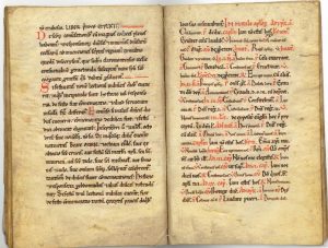 [AUVERGNE]. Manuscrit du XIVe siècle. 46 pp. in-4, broché dans un parchemin de réemploi. Encre brune et rouge.
