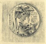 De la collection d'Alidor Delzant: très bel et grand ex-libris gravé sur cuivre par Loviot sur papier Japon. Il représente Athéna avec la tête de Méduse