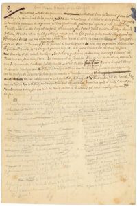 Manuscrit autographe à l'encre brune et au crayon (brouillon avec de nombreuses ratures et corrections). 1 p. in-folio, chiffrée «2». [1877].